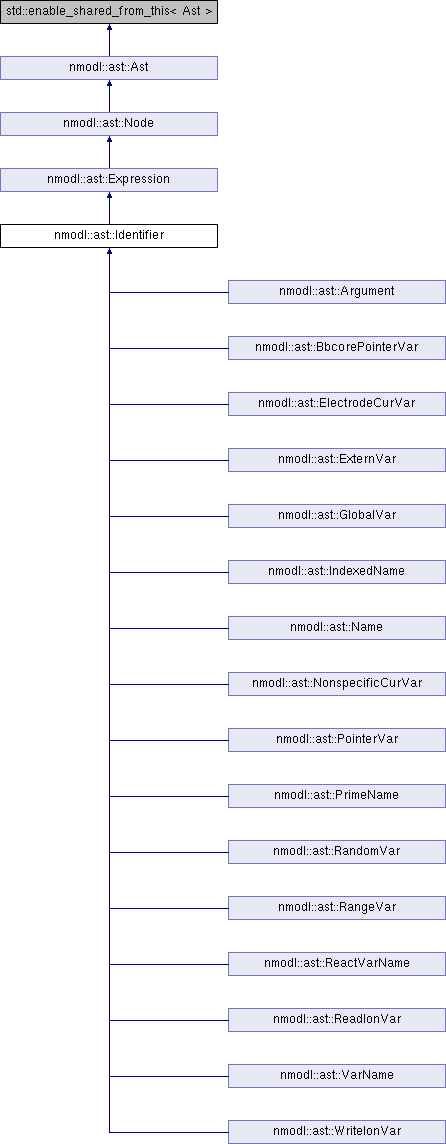 Reimplemented in nmodl::ast::WriteIonVar, nmodl::ast::VarName, nmodl::ast::ReadIonVar, nmodl::ast::ReactVarName, nmodl::ast::RangeVar, nmodl::ast::RandomVar, nmodl::ast::PrimeName, nmodl::ast::PointerVar, nmodl::ast::NonspecificCurVar, nmodl::ast::Name, and nmodl::ast::IndexedName.