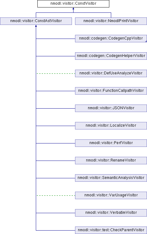 Implemented in nmodl::codegen::CodegenCppVisitor, nmodl::visitor::SemanticAnalysisVisitor, nmodl::visitor::PerfVisitor, nmodl::visitor::LocalizeVisitor, nmodl::visitor::FunctionCallpathVisitor, nmodl::codegen::CodegenHelperVisitor, nmodl::visitor::NmodlPrintVisitor, nmodl::visitor::JSONVisitor, nmodl::visitor::test::CheckParentVisitor, and nmodl::visitor::ConstAstVisitor.