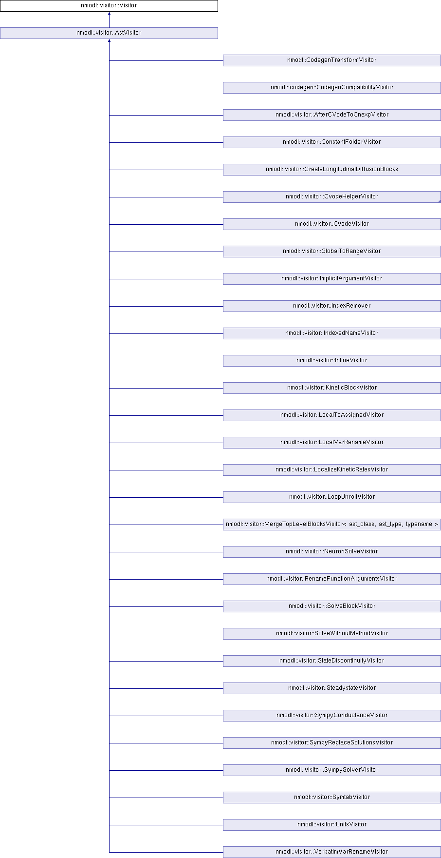 Implemented in nmodl::visitor::UnitsVisitor, nmodl::visitor::SympySolverVisitor, nmodl::visitor::SympyConductanceVisitor, nmodl::visitor::SteadystateVisitor, nmodl::visitor::SolveWithoutMethodVisitor, nmodl::visitor::SolveBlockVisitor, nmodl::visitor::NeuronSolveVisitor, nmodl::visitor::MergeTopLevelBlocksVisitor< ast_class, ast_type, typename >, nmodl::visitor::CreateLongitudinalDiffusionBlocks, nmodl::visitor::LocalToAssignedVisitor, nmodl::visitor::KineticBlockVisitor, nmodl::visitor::InlineVisitor, nmodl::visitor::IndexedNameVisitor, nmodl::visitor::CvodeVisitor, nmodl::visitor::SymtabVisitor, and nmodl::visitor::AstVisitor.