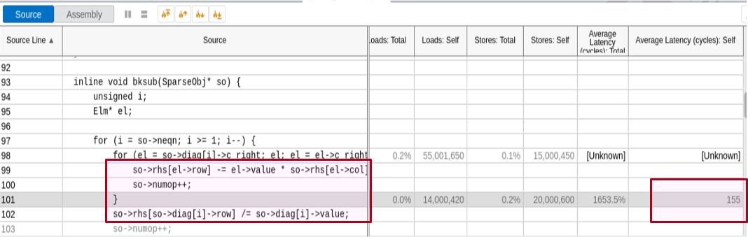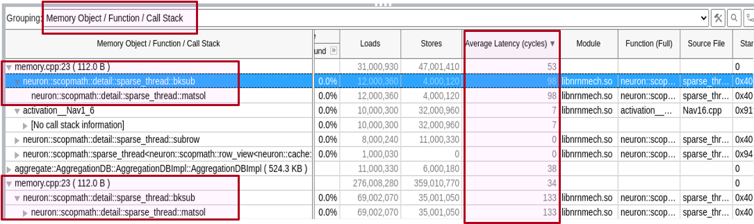 It’s important to note that higher latencies do not necessarily indicate false sharing. For instance, indirect-memory accesses with a strided pattern could lead to increased latencies. One should examine how the memory object is used within a function to determine if false sharing is a potential issue. Additionally, comparing access latencies with scenarios like single-threaded execution or versions without such issues can provide further insights.
