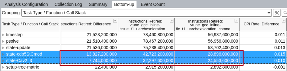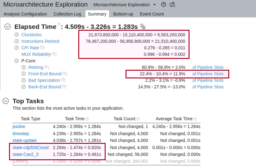 Now, we should get the performance counter report only for these two regions with relatively small execution overhead: